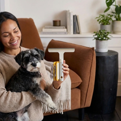 Pet Hair Cleaning Tool Set - Carpet Scraper Upholstery Cleaner with Extendable Pole